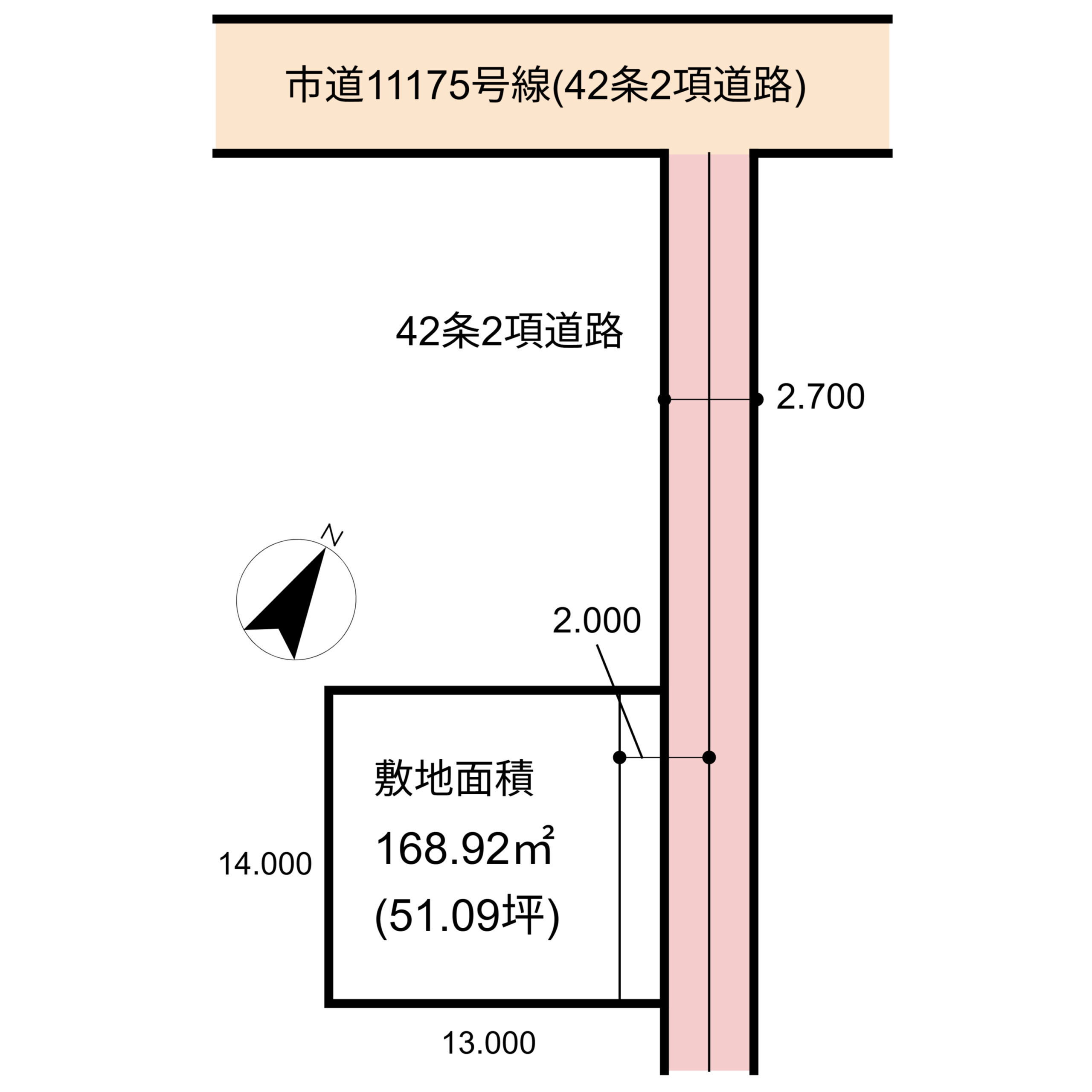 東側 幅員 2.7m(42条2項道路)